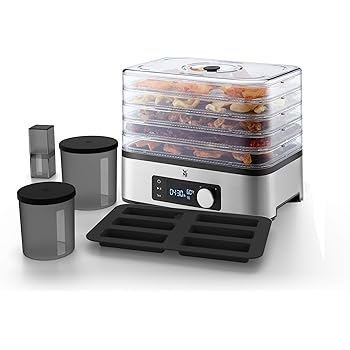 Dieser Dörrautomat von WMF dörrt alles was das Herz begehrt, zumindest essensmäßig. Manche Dörrautomaten bieten trotz eines moderaten Preises viele nützliche Funktionen und erbringen eine insgesamt gute Leistung. Auch lohnt es sich, sich von ihnen Dörrautomat Rezepte geben zu lassen, so wissen Sie schon, was man alles mit dem Dörrapparat machen kann. achten müssen, welcher Dörrautomat für Fleisch geeignet ist und wie Sie Trockenfleisch herstellen können.